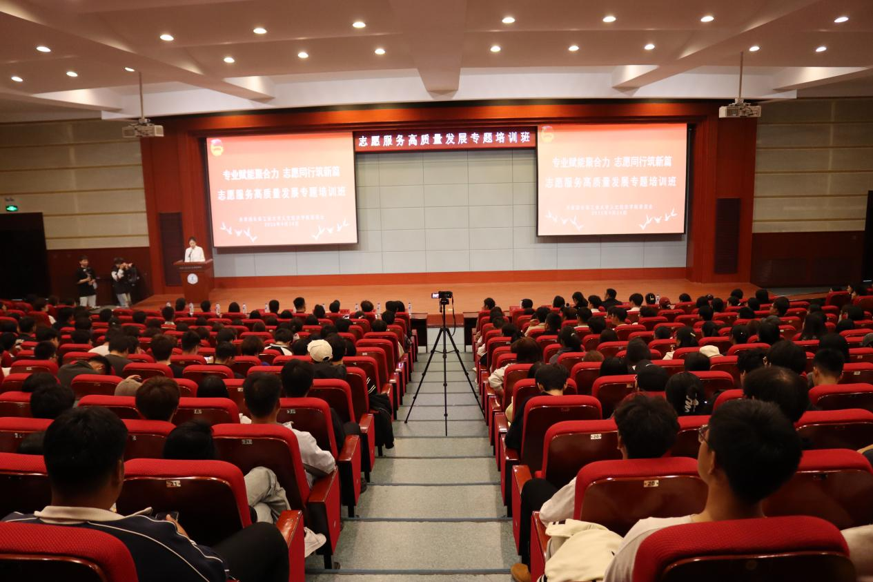 2025年9月24日下午,校团委在学术报告厅顺利举办“专业赋能聚合力,志愿同行筑新篇”志愿服务高质量发展专题培训班。学校党委副书记周丹出席活动。学校团委书记孟晔、副书记戴进,各学院团委书记、部分辅导员以及学生代表共计五百余人参加培训。本次培训邀请吉林省联青志愿者协会会长、吉林省青年志愿者协会秘书长徐浩钧作专题报告。校团委干事郭子琪主持会议。