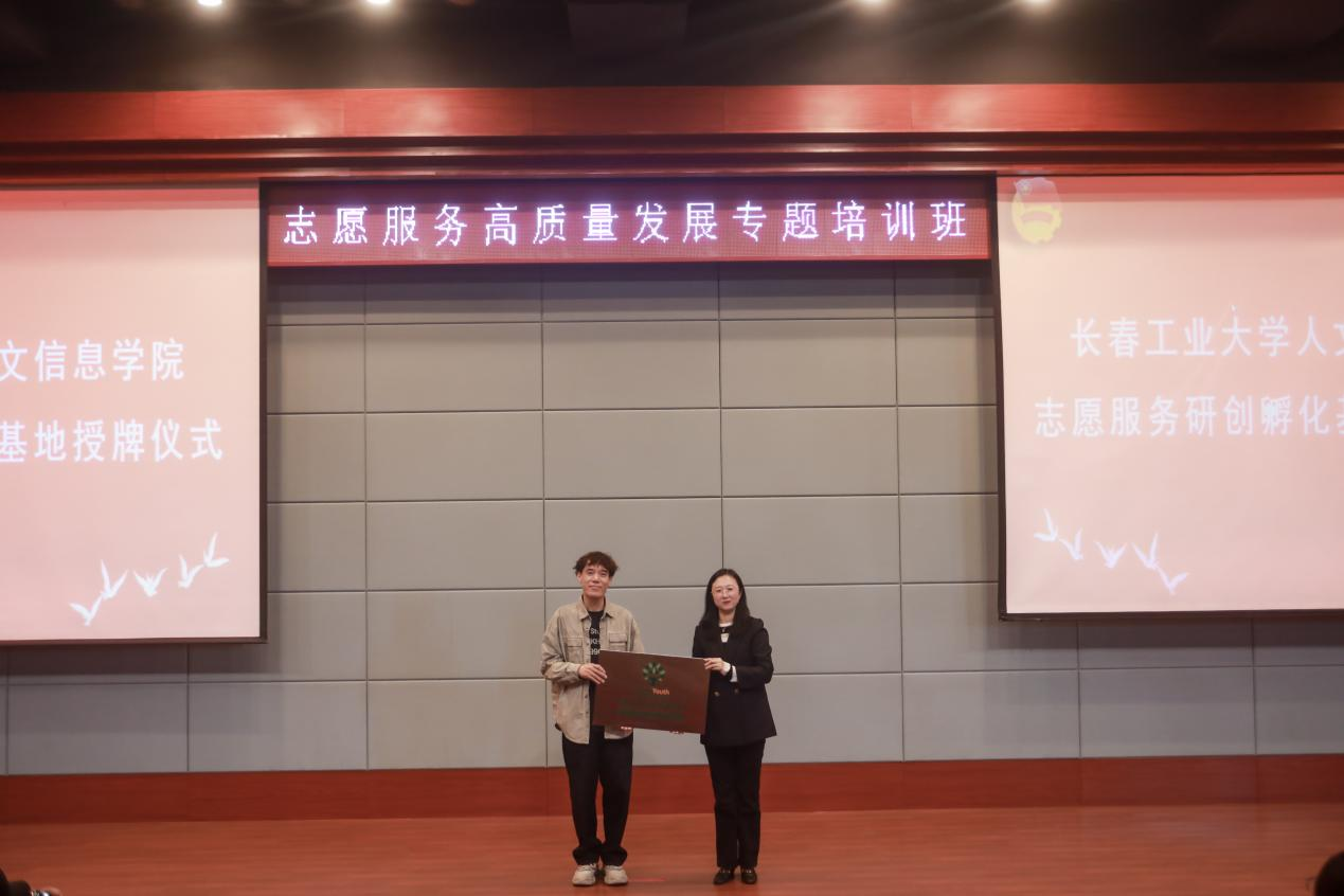 随后,吉林省联青志愿者协会为长春工业大学人文信息学院志愿服务研创孵化基地授牌。