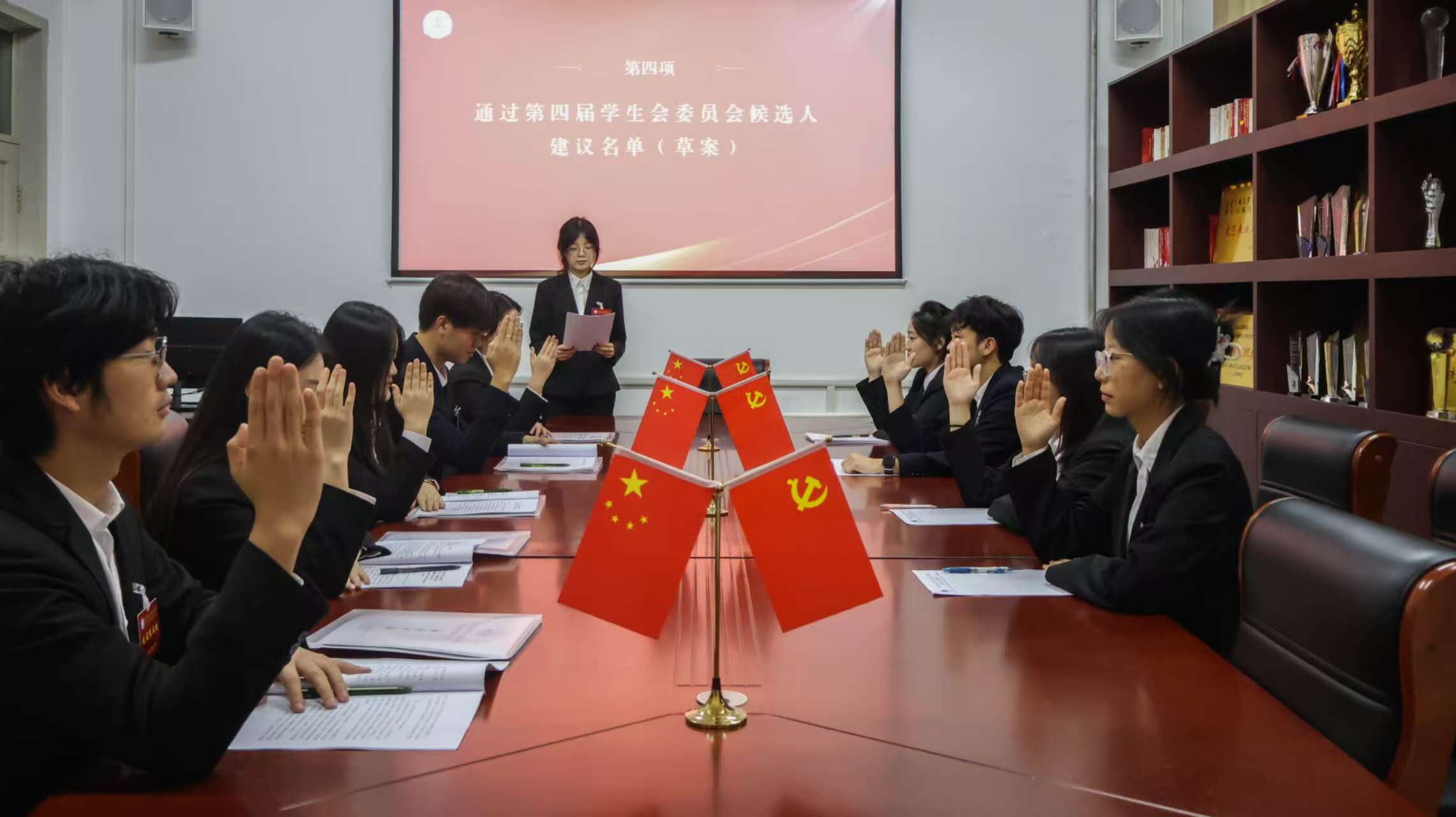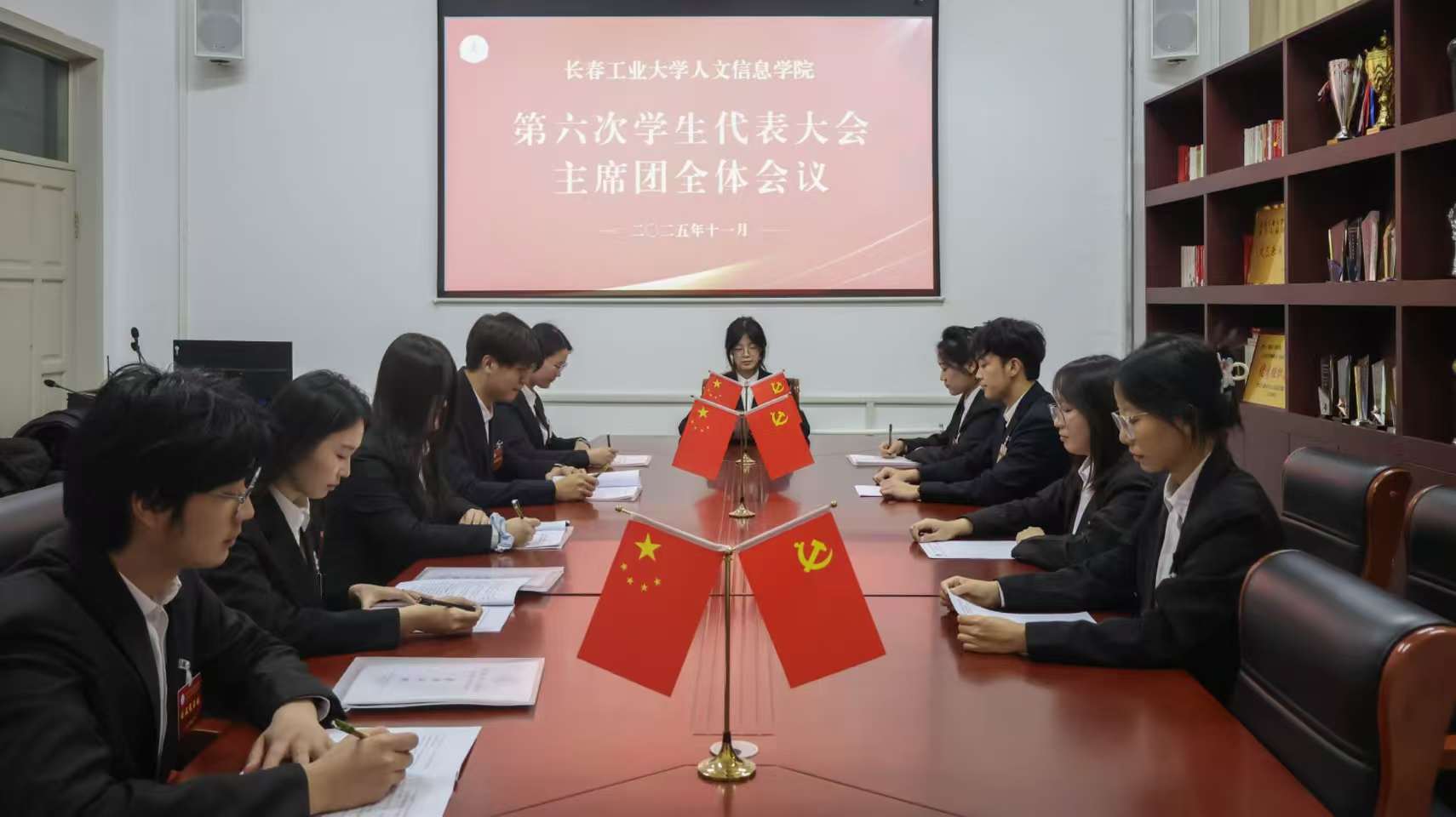 2025年11月14日,长春工业大学人文信息学院第六次学生代表大会大会主席团全体会议于我校党团活动室召开。本次会议由俎心怡同学主持。