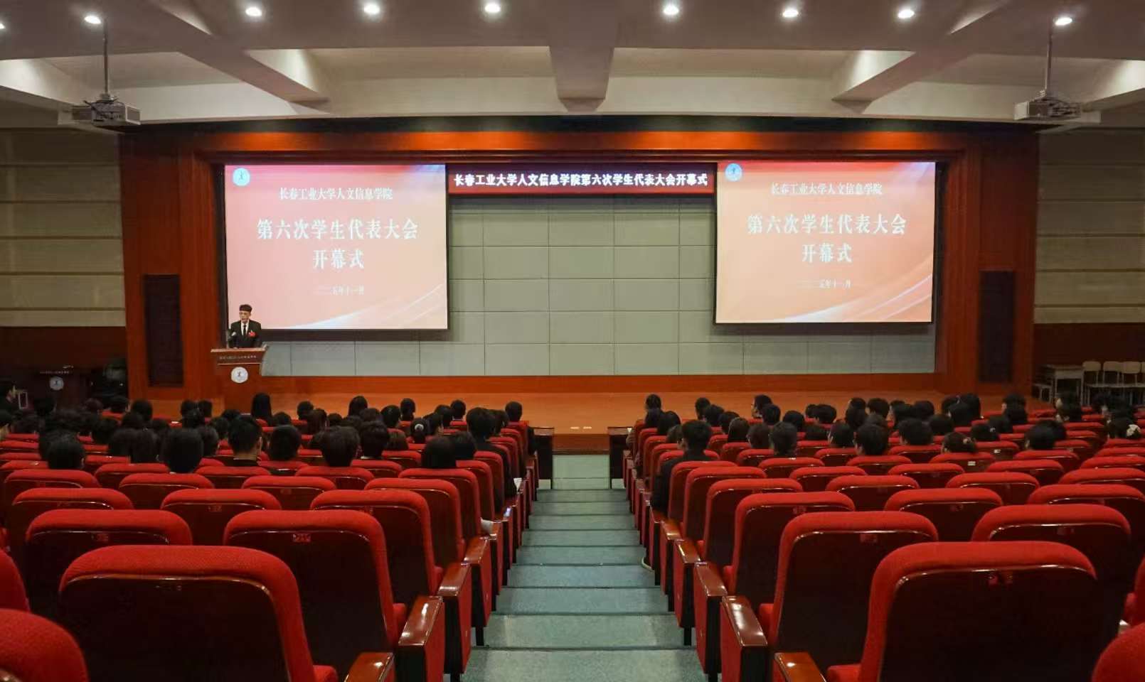 2025年11月15日,长春工业大学人文信息学院第六次学生代表大会在学术报告厅召开。校党委副书记周丹出席并致辞,校党委学生工作处处长庞旭,校团委书记孟晔,校团委副书记戴进,各学院团委书记、省内兄弟院校学生会组织代表以及166名学生代表和7名列席代表参加大会。开幕式由校团委干事赵唯勋主持。