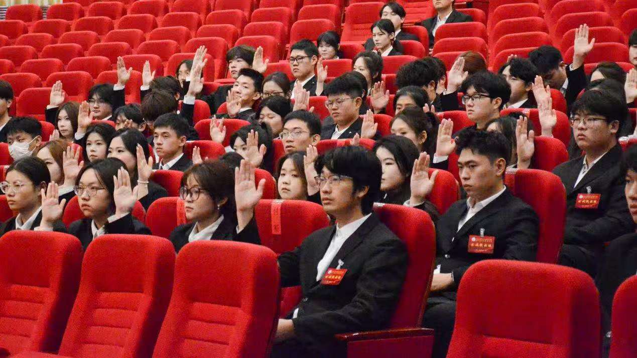 大会在嘹亮的中国共产主义青年团团歌声中落下帷幕,各项议程顺利完成。新一届学生会和全体学生代表将继续秉持全心全意为同学服务的宗旨,进一步发挥桥梁纽带作用,凝心聚力、接续奋斗,团结带领广大青年学生为中国式现代化建设挺膺担当!